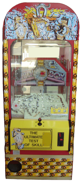 Watch Box STD è un apparecchio arcade a premio appartenente alla categoria delle crane machines/claw machines, nello specifico è una gru pesca peluche. Prodotta da Elaut in Europa nei primi anni 2000, supporta un giocatore per volta ed è strutturata con un cabinato compatto pensato per ospitare premi di piccole dimensioni. L’estetica richiama il mondo dei gift shop, con un’esposizione dei premi ben visibile che attira subito l’attenzione. Il gameplay è intuitivo: il giocatore muove la benna con precisione cercando di catturare i premi esposti. Il ritmo di gioco immediato e le sue dimensioni contenute la rendono adatta sia a location piccole che a grandi family entertainment centers ad alto flusso. Disponibile in versione unica con benna piccola per peluche misura 1-2 o orologi smartwatch.